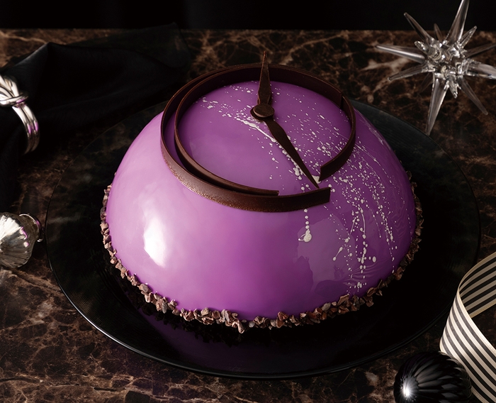 水都大阪のランドマーク「中之島フェスティバルタワー・ウエスト」の最高階層にある「コンラッド大阪」からはコンラッド大阪の象徴であるパープルカラーを纏った気品あるケーキを販売。時計の針が指す12時25分には「お客様がクリスマスの瞬間を特別なものとして刻めますように」というシェフのメッセージが込められています。