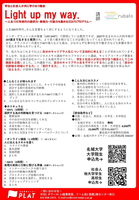 <主 催> 名城大学社会連携センターPLAT、株式会社ルバート
