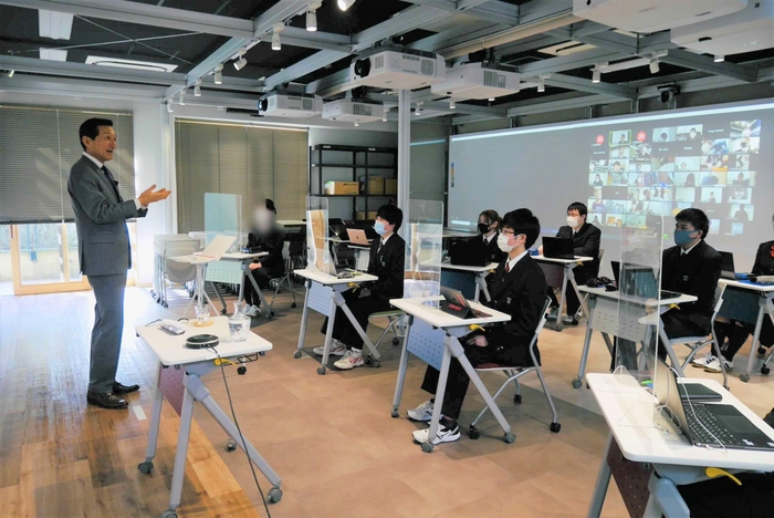 特別講座では、「幸せとは何か」また、「人として大切にして欲しいことは何か」等について、ワタミグループの創業者であり、日本経団連理事、政府教育再生会議委員、神奈川教育委員など多数の組織で役職を歴任している理事長の渡邉が、自身が第一線で活動してきた経緯を踏まえて講義しました。渡邉は自身が考える幸せとは「『あなたがいてくれて良かった』『あなたが生まれてきてくれて良かった』と言われるような生き方である」とし、生徒に対してもそんな人生を歩んで欲しいと説きました。また、コロナの影響を含めた日本経済の動向についてもふれ、今のうちから生徒がどのような心構えで勉学に励むべきかについても語りました。ID学園高等学校では今後も理事長による特別講座を定期的に開催する予定です。