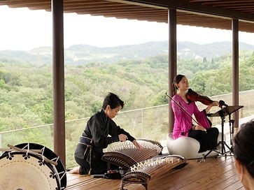 本イベントは、淡路島で仕事と音楽活動のダブルキャリアを実践し、音楽を通じた地方創生を目指す音楽家集団 パソナグループ“音楽島”メンバーが運営・企画。四方を山に囲まれた静かな環境と国産杉を用いて作られた全長100mのウッドデッキの空間の中で、琴・太鼓・ヴァイオリンの演奏を計3回お楽しみいただけます。演奏を楽しんでいた後には、360度に広がる圧巻の景色の中で美しい大自然を五感で感じる禅などのアクティビティや、砂糖、油、乳製品、小麦粉、動物性食品を一切使用せず作られた禅坊料理を提供いたします。