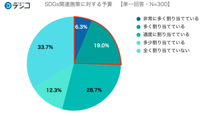 25%以上の企業がSDGs関連施策に予算を多く割り当てている