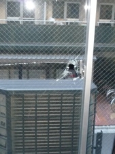でも再発防止のためには直せばいいってもんでもありませんので、物理的に割られないようにパンチングメタルを付けることと、館内への機械警備もすぐ手配することにしました。