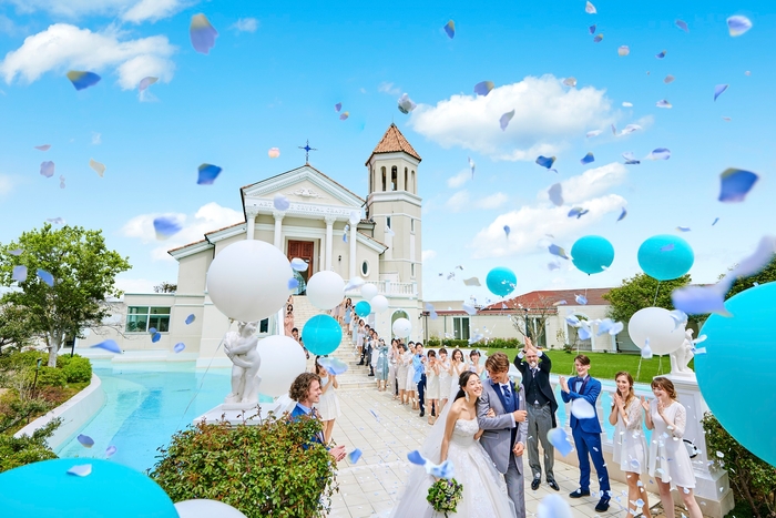 全面ガラス張りにすることで青空が更に広がり、降り注ぐ自然光が優しく祝福の時を包み込みます。