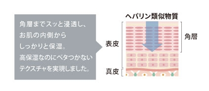 有効成分「ヘパリン類似物質」と「グリチルリチン酸ジカリウム」を配合。有効成分の「ヘパリン類似物質」が肌を整え、潤いを保ちます。さらに「グリチルリチン酸ジカリウム」配合で肌荒れやニキビを防ぐので、マスク荒れやマスクネ対策にもおすすめです。