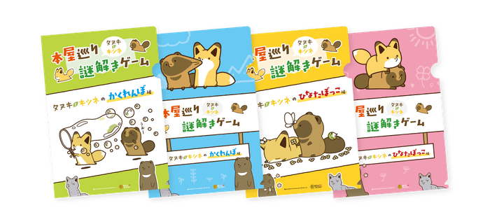 「本屋巡り」に作品の世界観を入れ込むことで、作品の可愛くも思わずフッと笑ってしまうようシュールな癒しの雰囲気を、リアルに楽しめる周遊コンテンツです。2種のストーリーや謎解きキットなど、今回のために著・アタモト氏の協力のもと、オリジナルで制作されています。参加特典として限定クリアファイルが貰えるなど「タヌキとキツネ」ファンにとってもうれしいイベントとなっています。