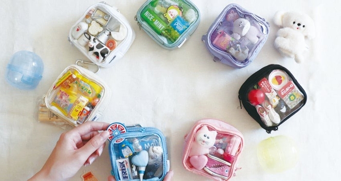 そんな中、SNSでよく見るのがお気に入りのお宝をクリアなポーチに入れる【ガチャ詰め】