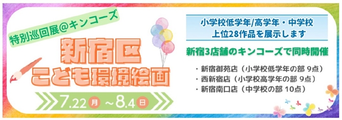 キンコーズ・ジャパン株式会社(本社:東京都港区、代表取締役社長:渡辺 浩基、以下 キンコーズ)は、新宿区こども環境絵画コンテスト入選作品の展示を、キンコーズ・新宿御苑店、西新宿店、新宿南口店にて、2024年8月4日(日)まで開催します。