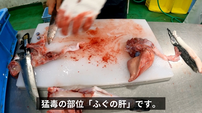 下関には多くのふぐ加工場があり、ふぐ専門の熟練の技術者がひしめいています。技術者の仕事で毒は完全に取り除かれます。この状態をみがきと呼びます。