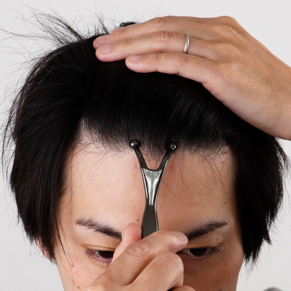 生え際から側頭部、頭頂部へつまみ上げるように引き上げるダブルボール。頭皮とつながっている顔の筋肉も意識しながら引き上げるように使用できます。
