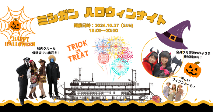 10月31日(木)までの期間、外輪船ミシガン船上にて「ミシガンハロウィンフェア2024」を開催します。