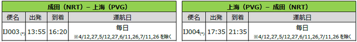 ◆成田=上海線 (対象期間:2025年3月30日~7月31日)