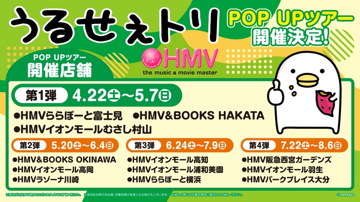 4/22から3店舗ずつ第4弾まで開催 第1弾は富士見、博多、むさし村山のHMV各店