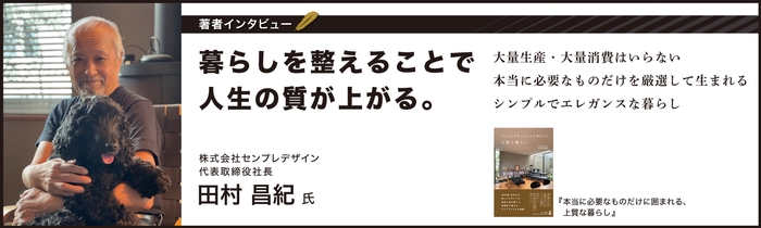 著書『本当に必要なものだけに囲まれる、上質な暮らし』を刊行した、株式会社センプレデザイン代表者の田村昌紀氏に、質のよい暮らしとデザインについて伺いました。