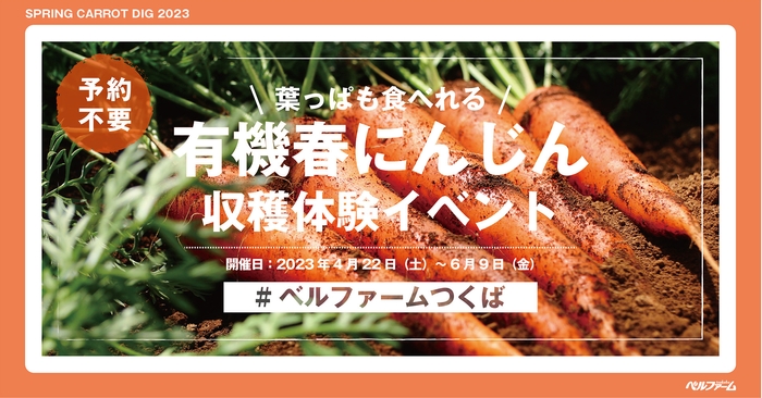 耕地面積全国3位の茨城県。東京都からのアクセスもよい県南部に位置するつくば市の郊外でケールやにんじんをメインに有機野菜の栽培から加工、販売までの自社一貫生産体制を有する株式会社ベルファームは2023年4月22日(土)の営業より予約不要で参加可能な葉っぱまで食べれる春にんじんの収穫体験イベントを実施します。