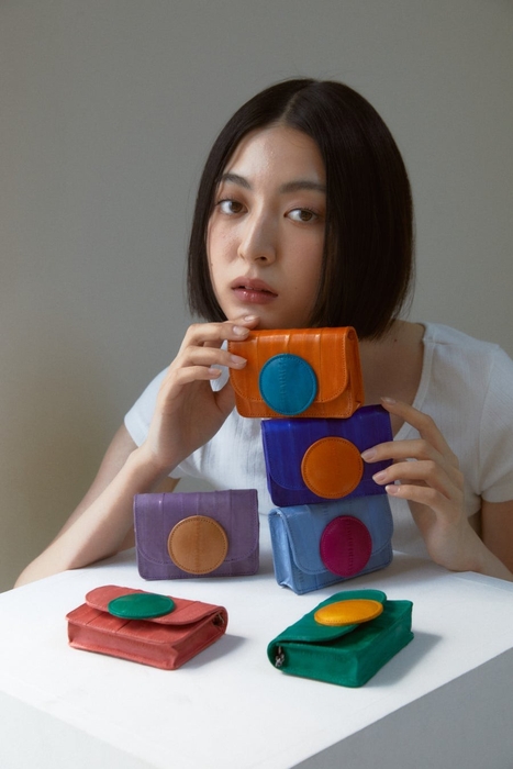 イールスキンは、一般的な牛革や羊革と比べて加工が難しく、主に高級品に使用される珍しい素材。その魅力は、しなやかで滑らかな質感、驚異的な耐久性、そして一点ごとに異なる唯一無二の模様にあります。また、韓国の食品産業の副産物として活用され、廃棄物を削減するサステナブルな選択肢としても注目されています。