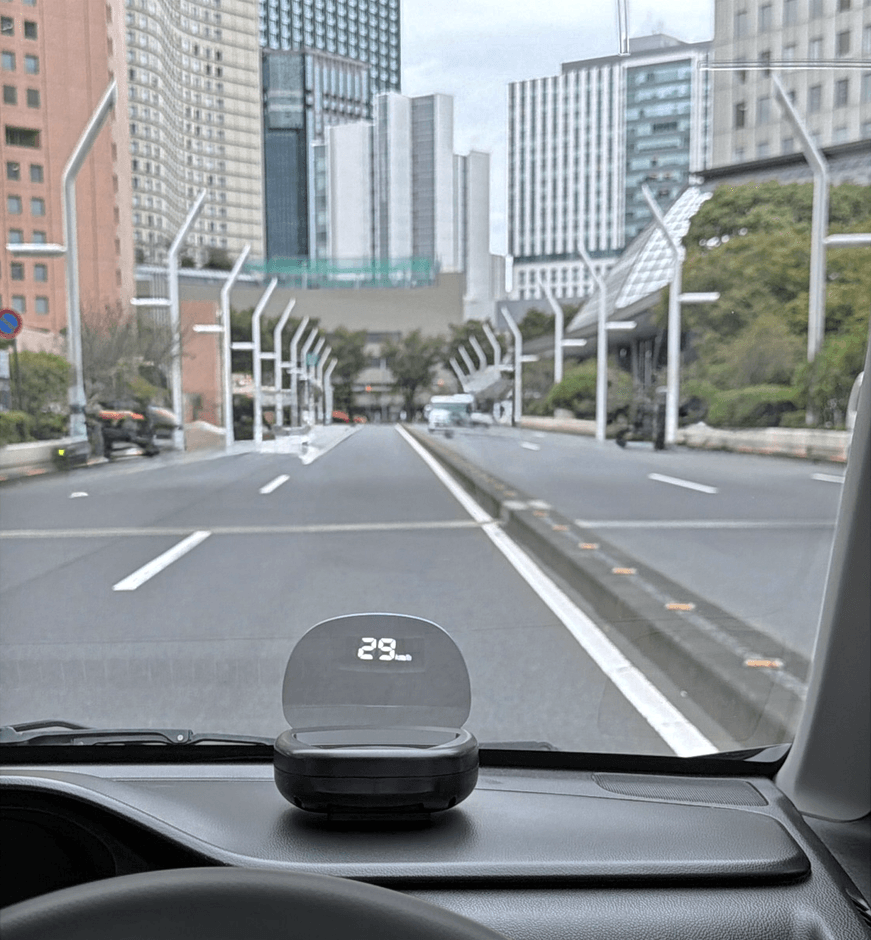 2025年5月に発売したLumieHUDは、小型車や軽自動車などHUDが搭載されていない車でも、後から置くだけで手軽にHUDを体験できる製品です。純正HUDを製造しているノウハウを活かし、同じ技術をコンパクト化したLumieHUDは、運転時の焦点位置にスピード表示が出るため「運転が快適になった」「走行速度を意識するようになった」といったお声をいただいております。