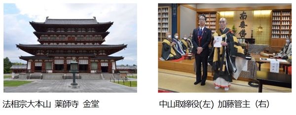当社は、旅行会社として長年にわたり、奈良への旅を企画したくさんの方をご案内してきました。世界遺産であり歴史的に貴重な国宝や重要文化財を多数有する薬師寺に、全国から参拝される皆様のお役に立てればということで、奉納施工をさせていただく運びとなりました。