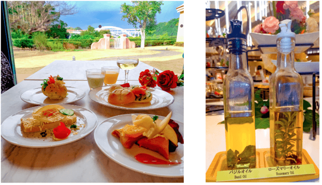 パンや具材の他にも、レストランスタッフが庭で育てた季節のハーブを漬け込んだお手製のオリーブオイルもお見逃しなく。