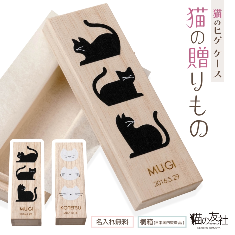 猫の友社は、猫のヒゲを桐箱に入れて保管できるケースをご提案いたします。