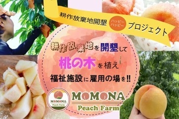MOMONA Peach Farm(モモナピーチファーム 代表:笠原 奈々)は、クラウドファンディング「耕作放棄地を開墾して桃の木を植え、福祉施設に雇用の場を」をCAMPFIREにて2022年6月4日~7月18日に実施しております。桃をはじめとする果樹や野菜で農業を営むMOMONA Peach Farmは、新規就農者として地域農業に関わるうちに感じた「高齢化・後継者不足によって起こる耕作放棄地の問題」を解消し、地域農業を活性化させるためにできることは何なのかを考え、本プロジェクトに挑戦することといたしました。