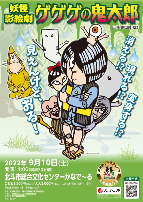 株式会社劇団影法師 妖怪影絵劇「ゲゲゲの鬼太郎」【北海道公演】が2022年9月10日 (土) に北斗市総合文化センター(北海道北斗市中野通2丁目13-1)にて上演されます。