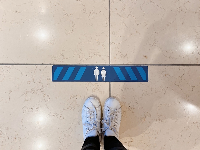 - チェックイン時やレストラン利用時など、待ち列が発生する箇所は足元にソーシャルディスタンスを促すマークを設置しております。