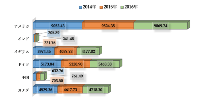 一人当たりの医療費、PPP(米ドル)– 2014-2016年