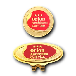 デザインモチーフは社名にもあるオリオン座を代表する星3つと、ゴルフ場のある国頭郡今帰仁村の「村鳥」にもなっている「三光鳥(サンコウチョウ)」です。体より長い尾が特長の「三光鳥(サンコウチョウ)」は、ボディを丸く描いて朱色で着色し、尾は長く伸ばしたラインで表現しています。高級感溢れる金メッキと朱色のコントラストに加え、サンドプラスト加工で仕上げた「オリジナルクリップマーカー」は、販売用とプレゼント用の2種類。ラウンドを楽しむゴルファーのための素敵なアイテムとして、活躍することは間違いないでしょう。