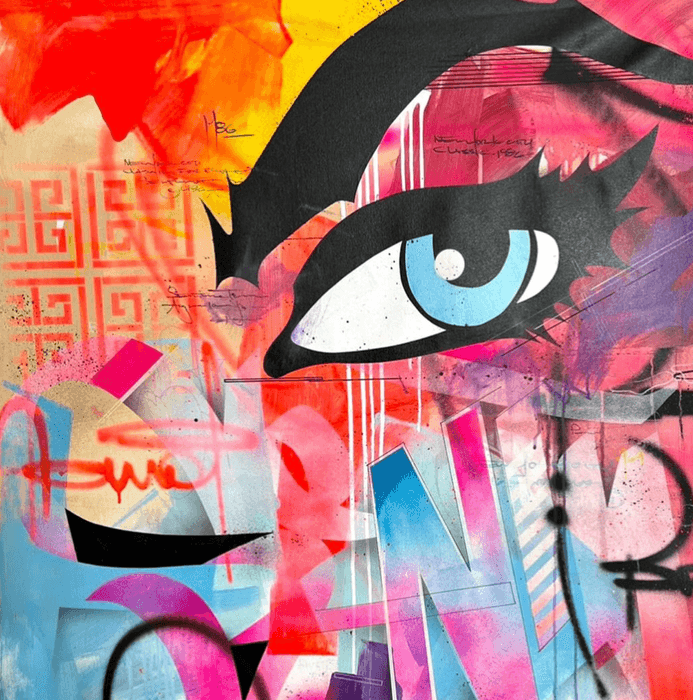 古典的なニューヨーク・グラフィティ・アートから、グラフィック・レタリング・スタイルと3D要素や抽象芸術のテクニックを組み合わせたものへと進化してきたSen2の作品には、すべてグラフィティ要素が含まれており、彼の芸術的ルーツと、洗練され常に進化し続けるスタイルを反映しています。さらに、彼の作品は、色彩と動きの間に楽しい対話を生み出しています。それはSen2はグラフィティとファインアートの境界線を曖昧にしています。特にバウハウス運動とジョセフ・アルバースの色彩理論に大きな影響を受け、グラフィティからメカニカルなスタイルへの進化に焦点を当てた「メカニコ」では、シャープな線の使い方が大胆な色使いと微妙なブレンドでぼかされ、さまざまなテクスチャーの中で激しく衝突しているのです。