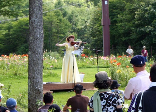 【富士観光開発株式会社】 山梨県・富士山麓 ふじてんリゾートリリーパーク 2010年7月31日~8月2日 ゆりをバックにヴァイオリンの演奏やフラの披露などイベントを開催!