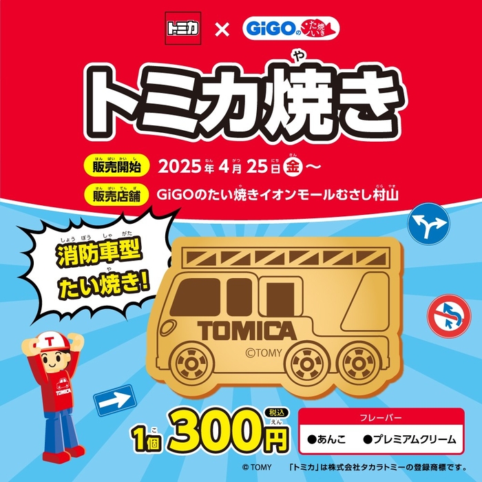 「トミカ」とコラボレーションした「キッズマーケット」の展開に合わせて、「GiGOのたい焼き」では「トミカ焼き」を常設販売いたします。