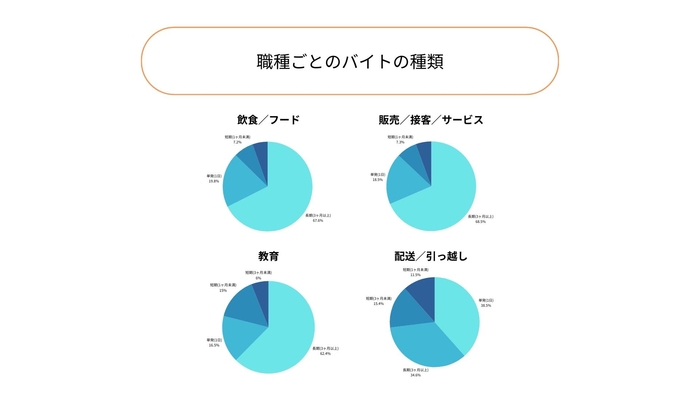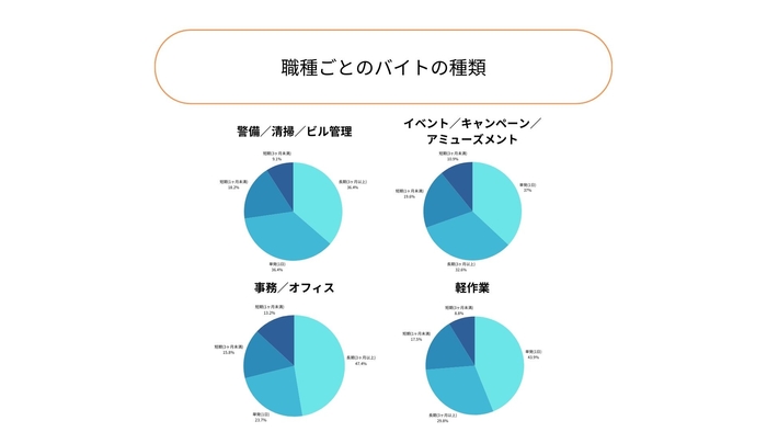 ●職種ごとのバイトの種類は「配送/引っ越し」「イベント/キャンペーン/アミューズメント」「軽作業」では単発バイトが1位に。その他の職種は長期バイトが優勢。