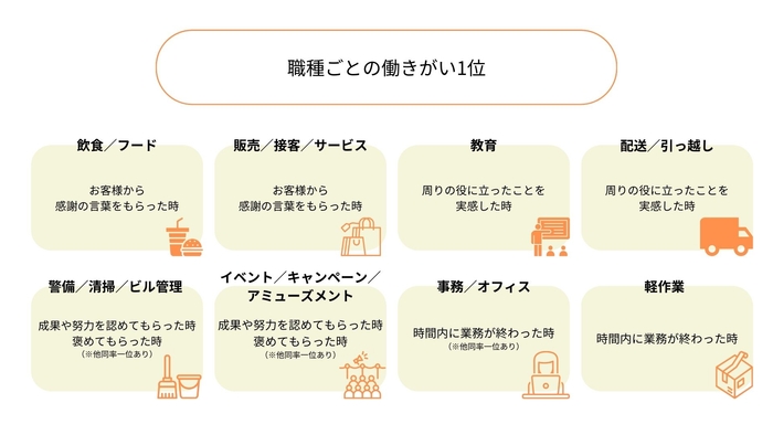 働きがいを感じる瞬間は職種ごとの傾向も見られました。
