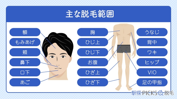 脱毛範囲はサロンやクリニックによって微妙に異なります。