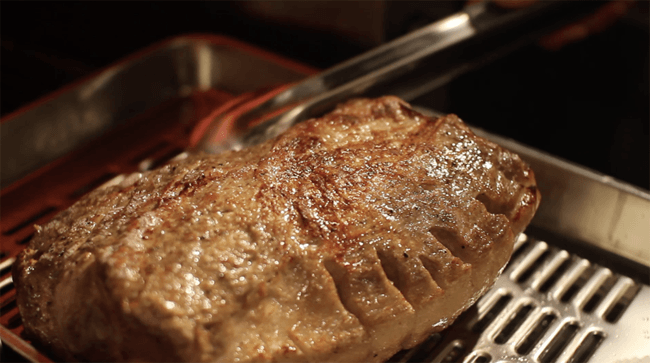 その豚肉を、徹底的に温度管理した低温調理でじっくりと火を通していく。温度が高すぎるとぱさついてしまい、反対に生のままだと食べられないポークステーキの開発は、3年間かけて行なわれた。あらゆる温度、時間を試し現在は生肉から完成品まで72時間をかけて作られる極上のポークステーキをのレシピを完成させた。