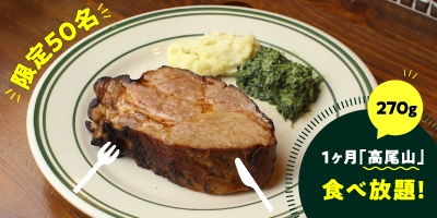・10,000円の支援で「高尾山(ポークステーキ270g 通常990円)」が1ヶ月間食べ放題