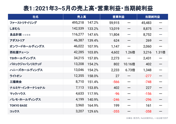 【レポート】コロナ禍2年目の2021年3~5月期決算まとめ/在庫消化が進み仕入れ抑制解除も第5波のリスク大