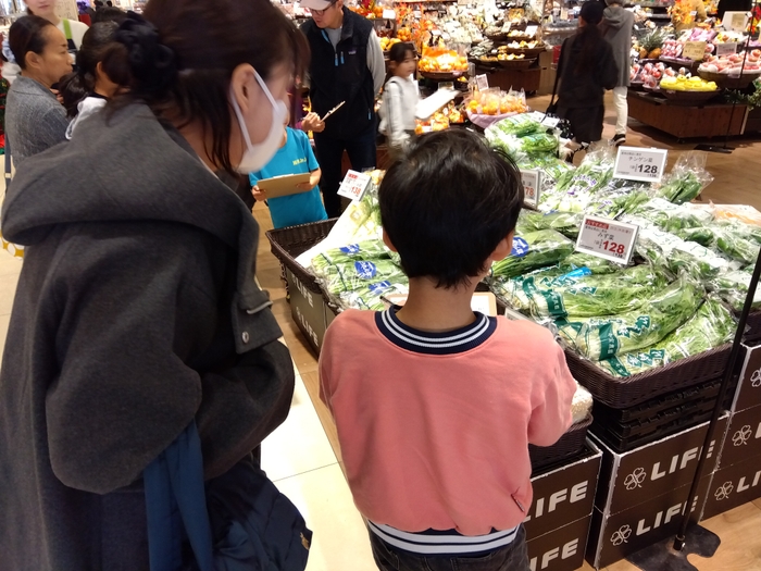 ライフからは、食べることの大切さを学ぶ食育イベントとして、バランスの良い食事についての話や不足しがちな野菜をミッションに沿って実際の売り場から探す“ミッションゲーム”を行いました。