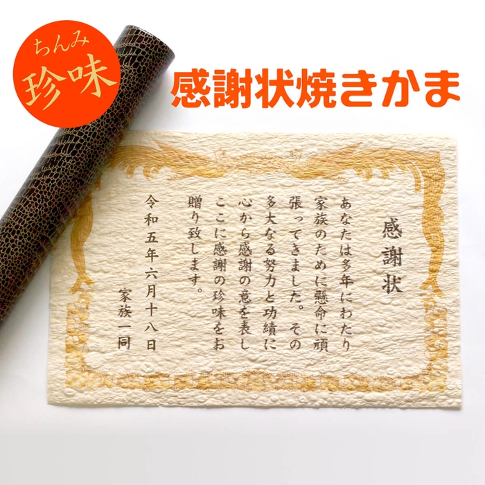 珍味 焼きかまシートで出来た世界初の食べられる感謝状