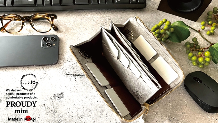 小さくても【最大20枚】膨らみづらくカードが整列。美しいイタリア革&ビスがスタイリッシュなミニ長財布・PROUDY_min