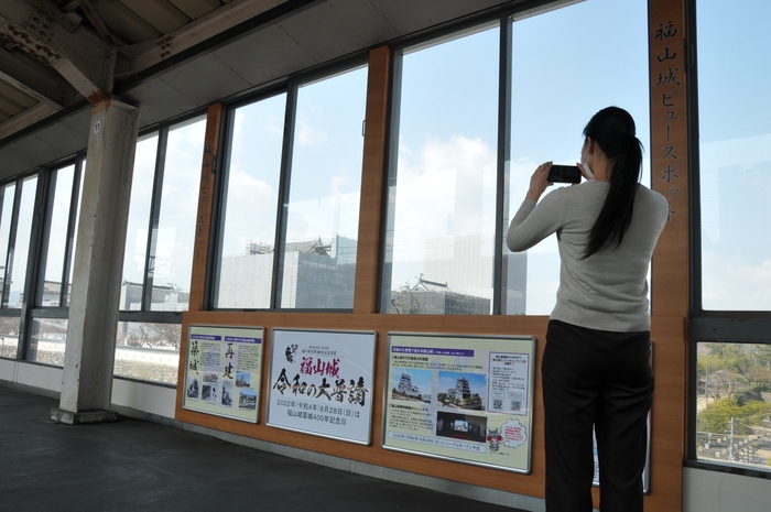 また,上りホームには,2022年の福山城築城400年事業として,ふくやま・新幹線活性化協議会と福山城築城400年記念事業実行委員会の協同で,「福山城ビュースポット看板」を設置しました。