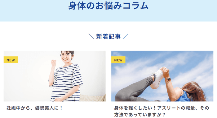 生活・食習慣のお悩み、子育てのお悩み、女性のお悩みなど幅広いジャンルの生活に役立つ健康コラムを掲載しています。鍼灸師、柔道整復師、トレーナー、理学療法士、管理栄養士など各方面の専門家が執筆し、健康に対するアプローチを詳しく解説します。