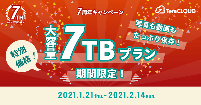 たっぷり7TBのストレージを特別価格で手に入れるチャンス❗国産クラウドストレージ「TeraCloud」が7周年記念キャンペーンを開催❗