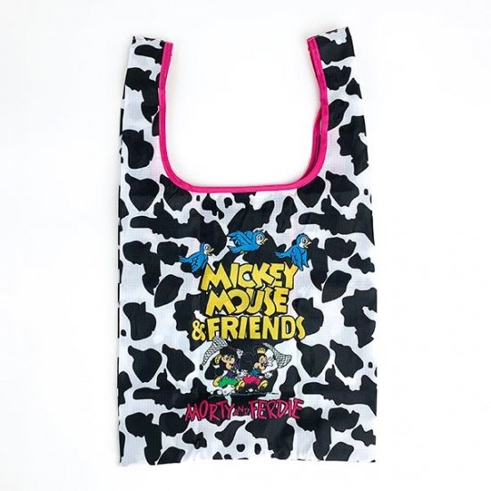 ホルスタイン柄のこちらのエコバッグも、オススメですよ♪インパクトのあるホリスタイン柄ですが、ミキミニのイラストがそれを和らげてくれています。ショッキングピンクの縁取りもアクセントになっていて、キュートですよ♡
