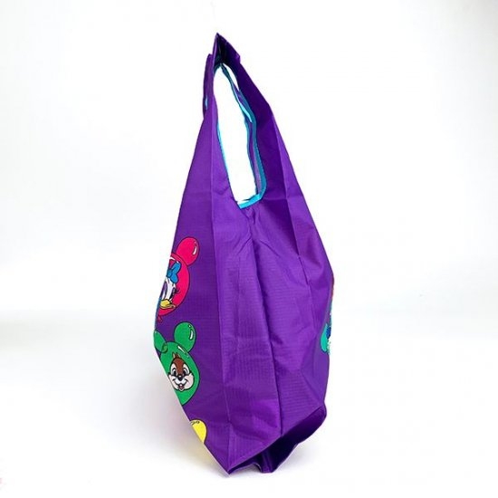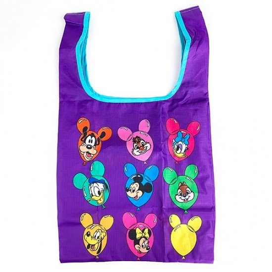まず最初は、ディズニーのキャラクターが大集合のバルーンデザインのエコバッグです。パープルカラーにカラフルなバルーンが並んでいて、その中にミッキーやミニー、チップ&デールまでデザインされています。ミッキーたちメインキャラクターが好きな方には、見逃せないデザインですね。