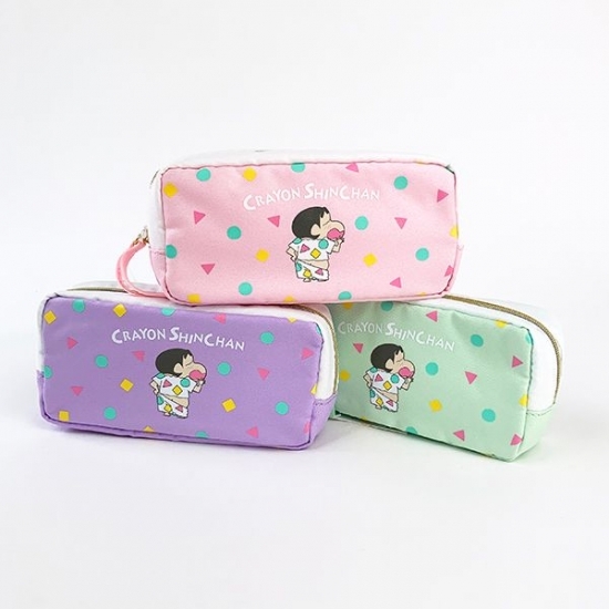 パステルグリーンがキュートなフラットポーチは、パジャマ姿のしんちゃんです♡110×200mmのサイズで、コンパクトに使っていただけます。