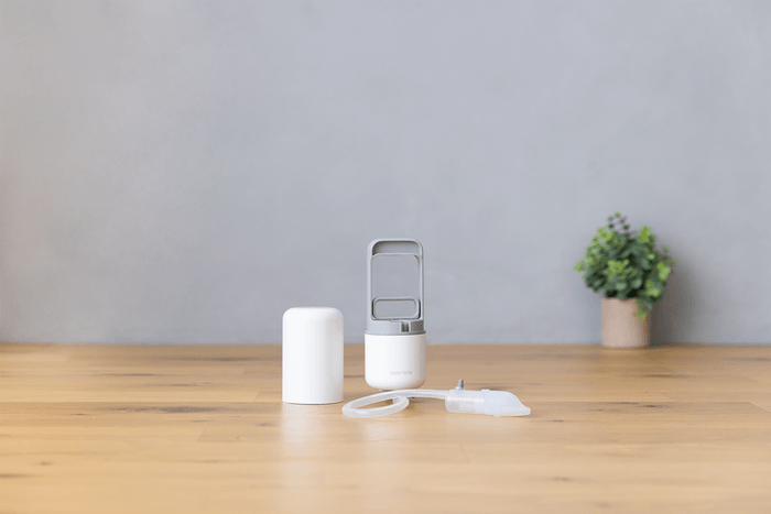 このハンドポンプ鼻すい器は、電池や電源が不要なため、夜間でも静かに使用でき、寝ている赤ちゃんを怖がらせない。真空ポンプ構造により、鼻水をしっかりと吸引し、逆流防止弁が付いているので衛生的に使うことができる。また、全てのパーツが本体に美しく収まるので、持ち運びも簡単で、使わない時は清潔にコンパクトに収納できる。育児の現場の声を丁寧に掬い上げた優しいデザインである。