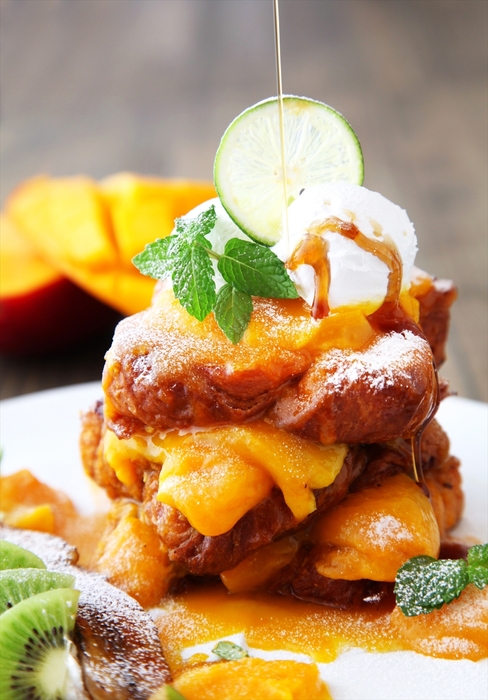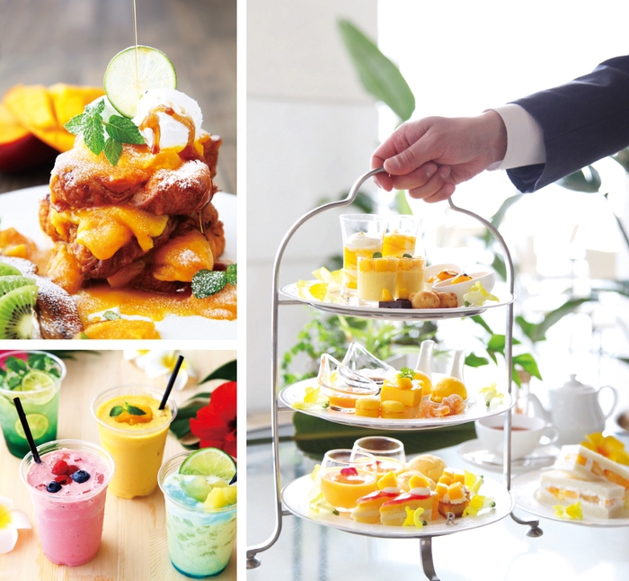 溢れるマンゴーのとろける果肉とジューシーソースが贅沢なフレンチトースト、みずみずしい沖縄産マンゴーの上品な甘みと香りを堪能できるアフタヌーンティー、ゆったりリゾート気分に華を添えるトロピカルドリンクを夏の海を一望する絶景カフェでお愉しみください。