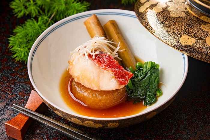 右)金目鯛を甘辛のタレでじっくり煮込んだ一品。口の中でほろほろと崩れる食感がたまりません。
