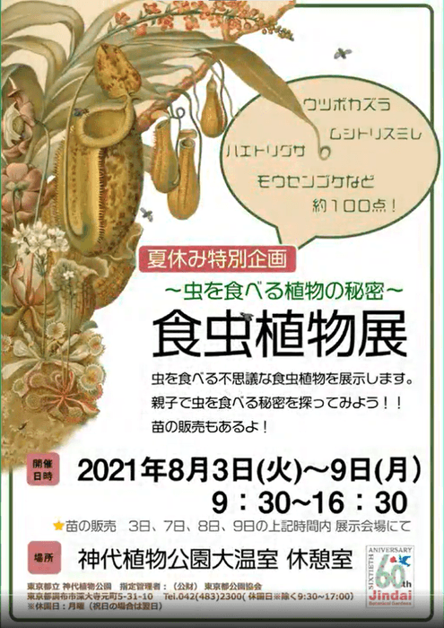 【神代植物公園】夏休み特別企画 8/3~8/9『食虫植物展』苗の購入も可能